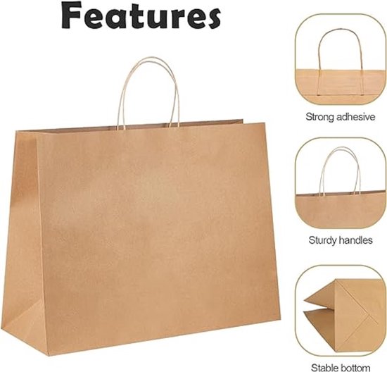 Bruin kraftpapier draagtas 32x16.5x27.5