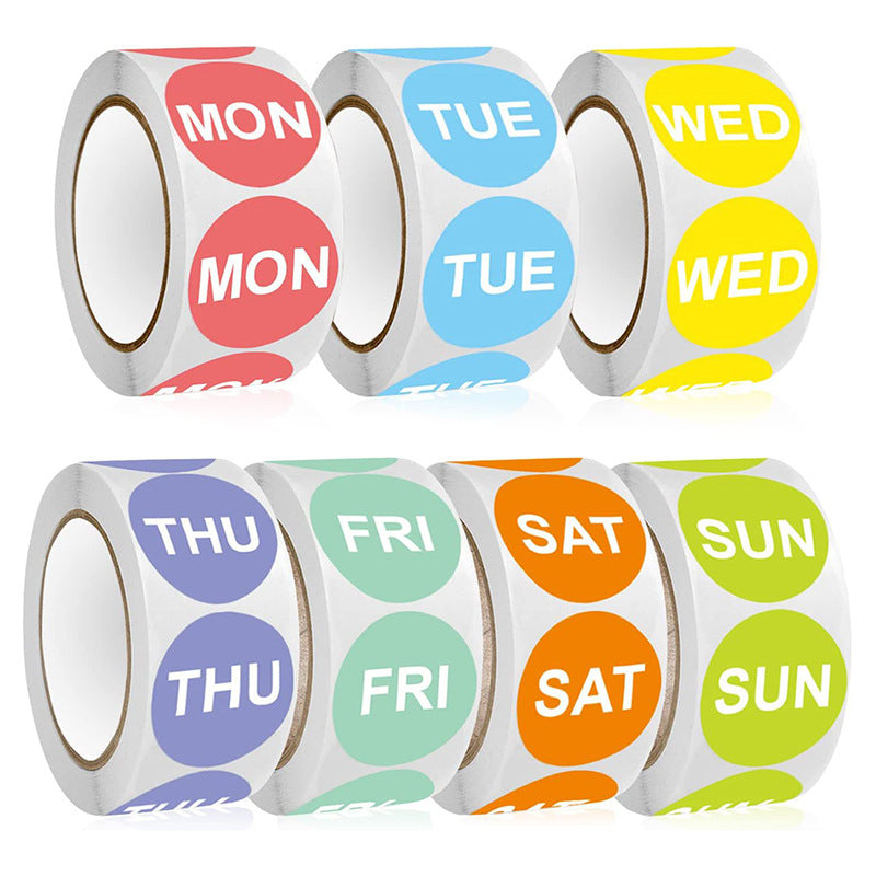 De etiketten zijn op twee manieren te gebruiken: neem de daglabel die hoort bij de dag van opening en noteer hierop tot wanneer het product houdbaar is. Of gebruik de daglabel van de dag waarop het product moet worden verwijderd en noteer hierop de datum van openen.